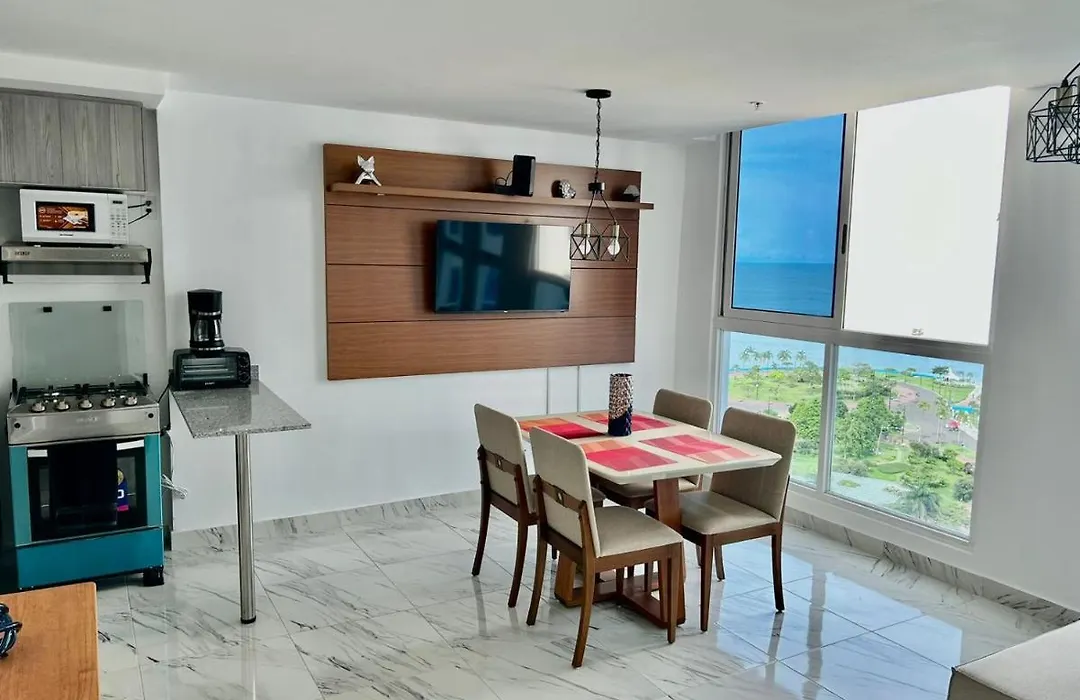 Denne 50 m^2 ferielejlighed ligger 5 km fra Panama City Paitilla lufthavn. Et fitnesscenter er tilgængeligt for de aktive beboere. Karaoke og en natklub organiseret for underholdning.